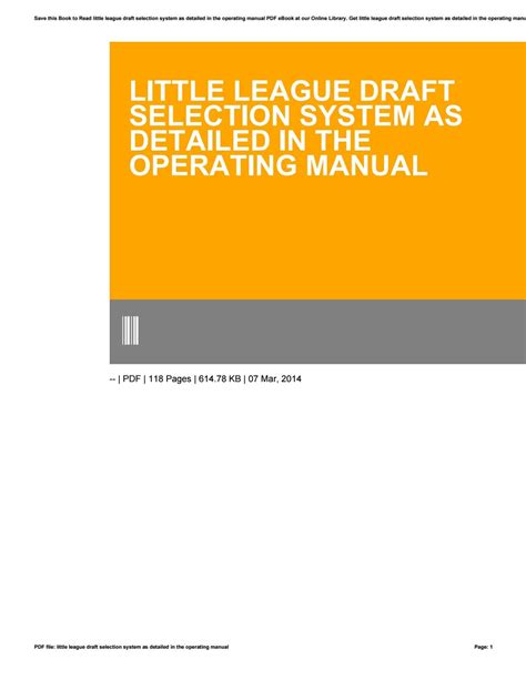 Free PDF Little league draft selection system operating manual PDF Gutenberg